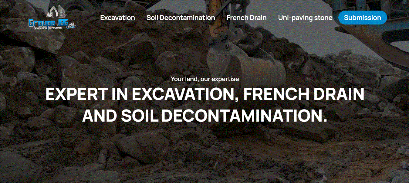 Le Groupe JBG et fils offers a wide and highly technical range of services — including excavation, soil decontamination, French drain installation, landscaping, drainage systems, and paving. One of the most critical challenges in this construction company website design was presenting these highly technical services in a clear, structured, and easy-to-understand format for both residential and commercial clients.